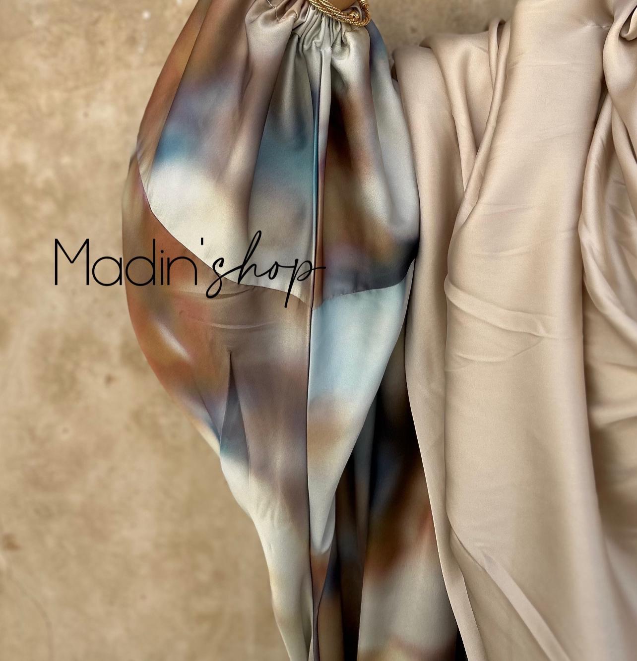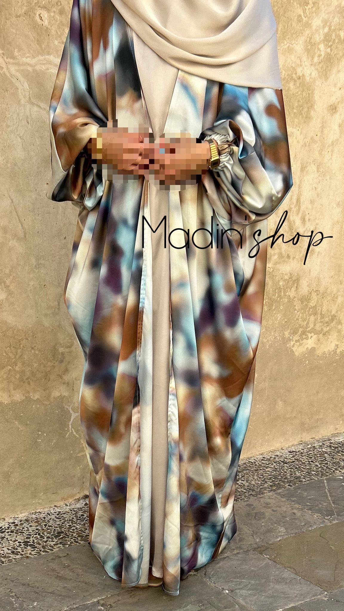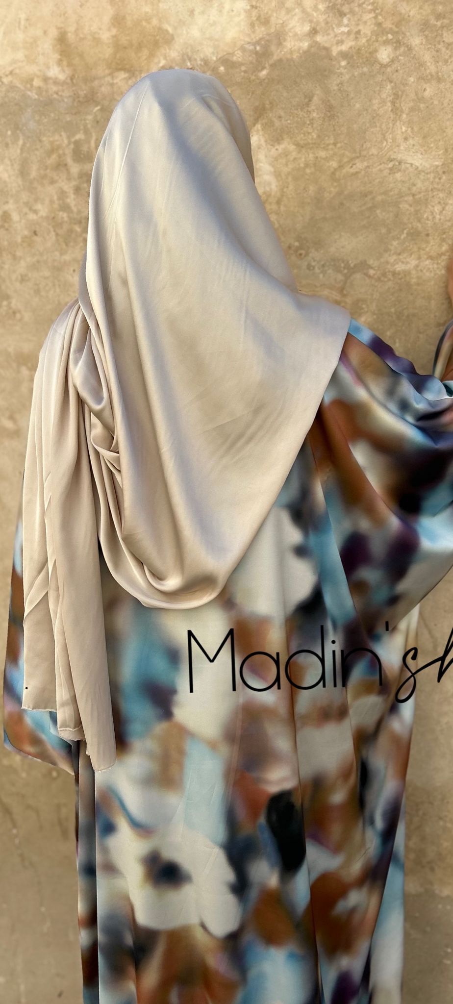 Notre Abaya Dina associé à sa sous robe et son voile.
