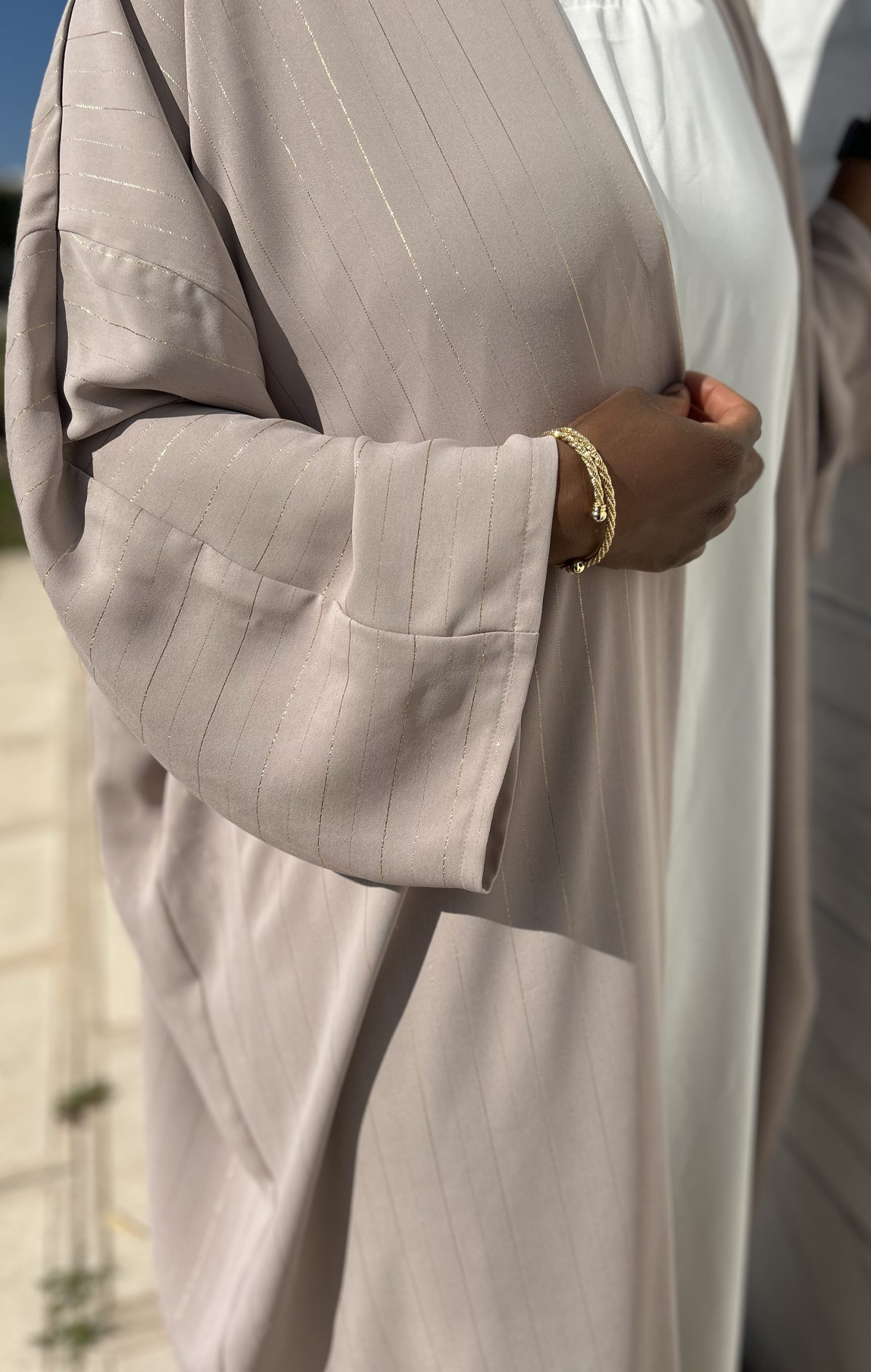 Nous vous proposer ce magnifique kimono en crêpe de soie rose poudrée à accorder avec la sous robe de votre choix .