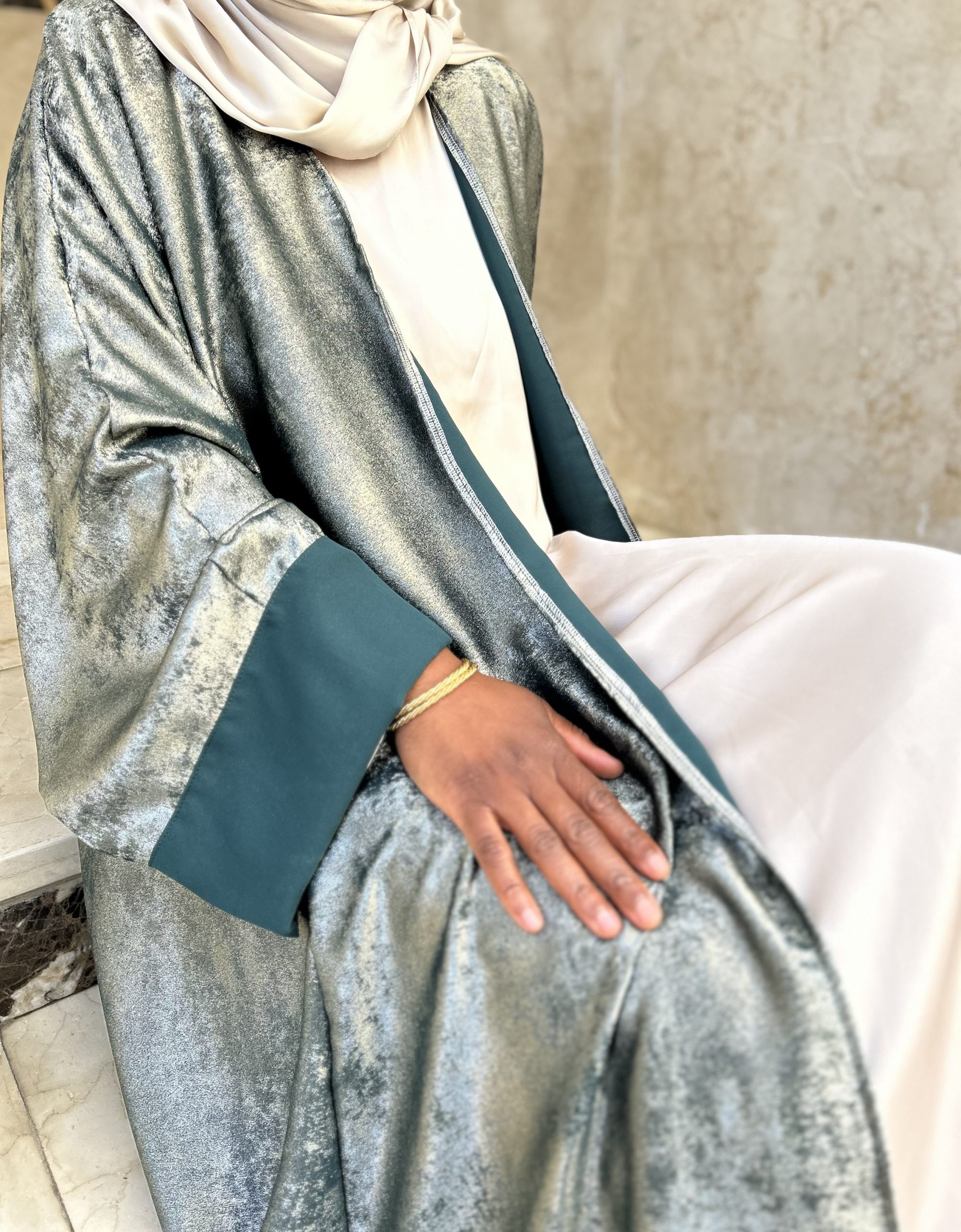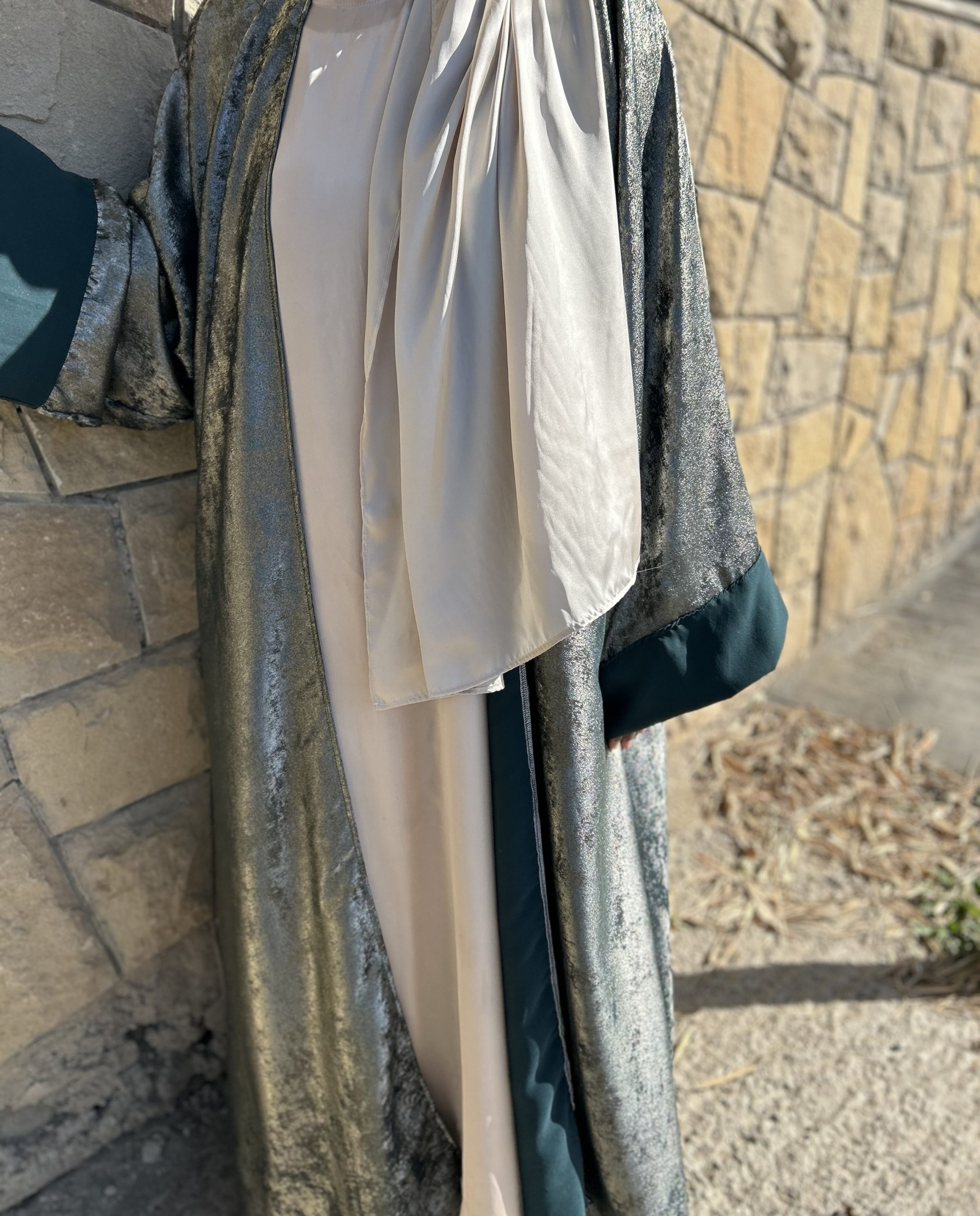 Abaya ZAHIRA ouverte , associé à sous robe et son voile .